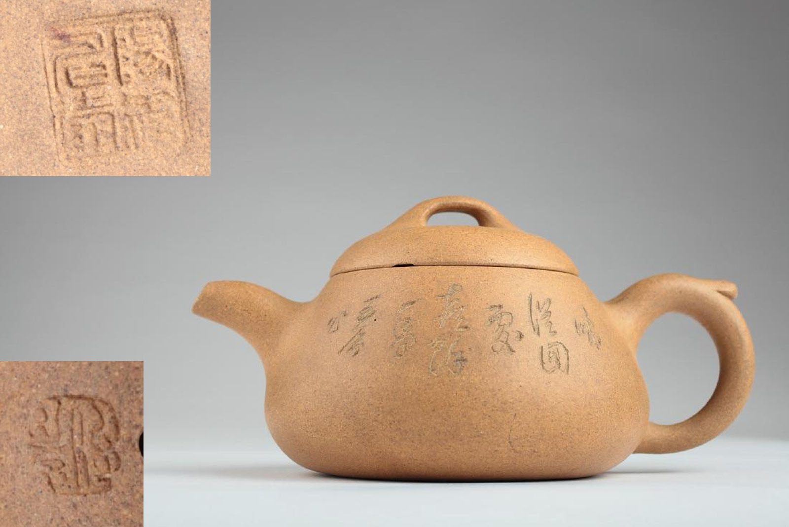 Beautifully inscribed YiXing Teapot from the 20th century. Click to learn more & see our Dec 2, 2017 sale. 紫砂壶的传奇始于宜兴太湖西岸,矿土藏于美丽的太湖之滨。于明朝被发现后,中国的茶艺和陶艺得以弘扬。 宜兴紫砂壶是由谁创造的呢? Lightly incised bamboo top with beige color pallet, perfect for a garden tea party. Click to learn more &… Read more »